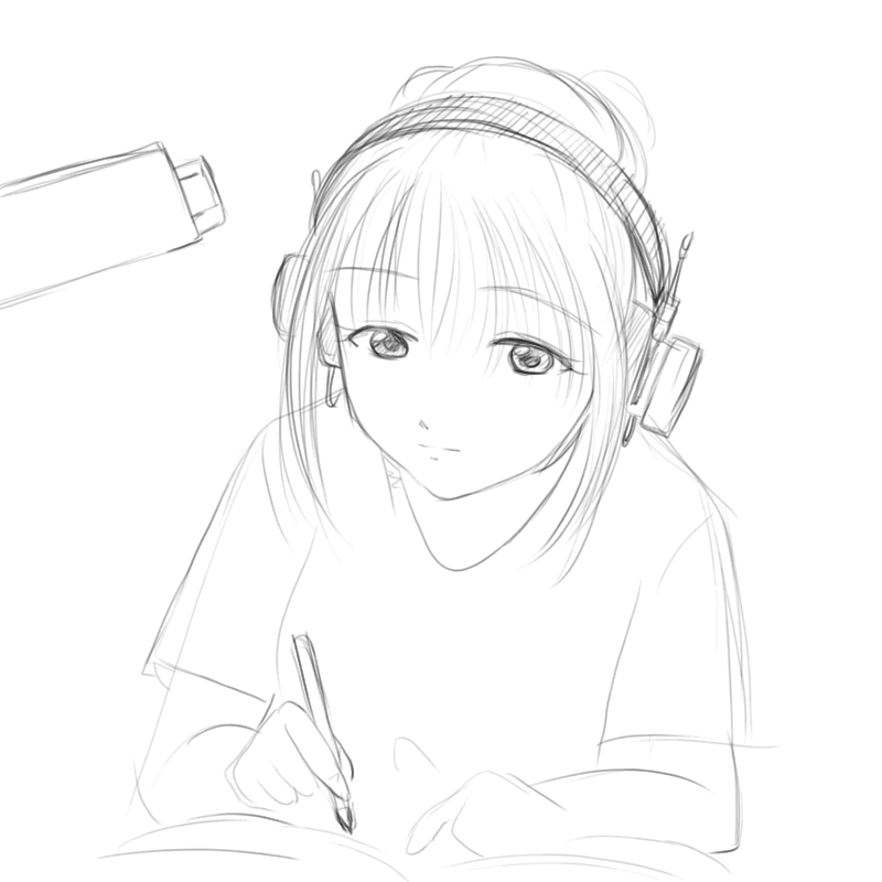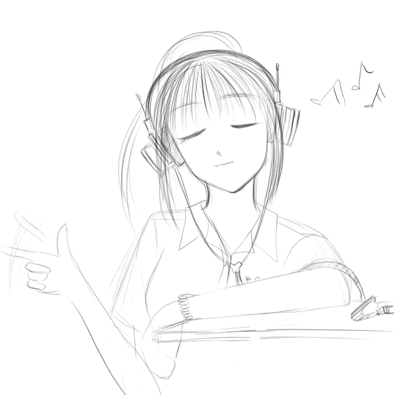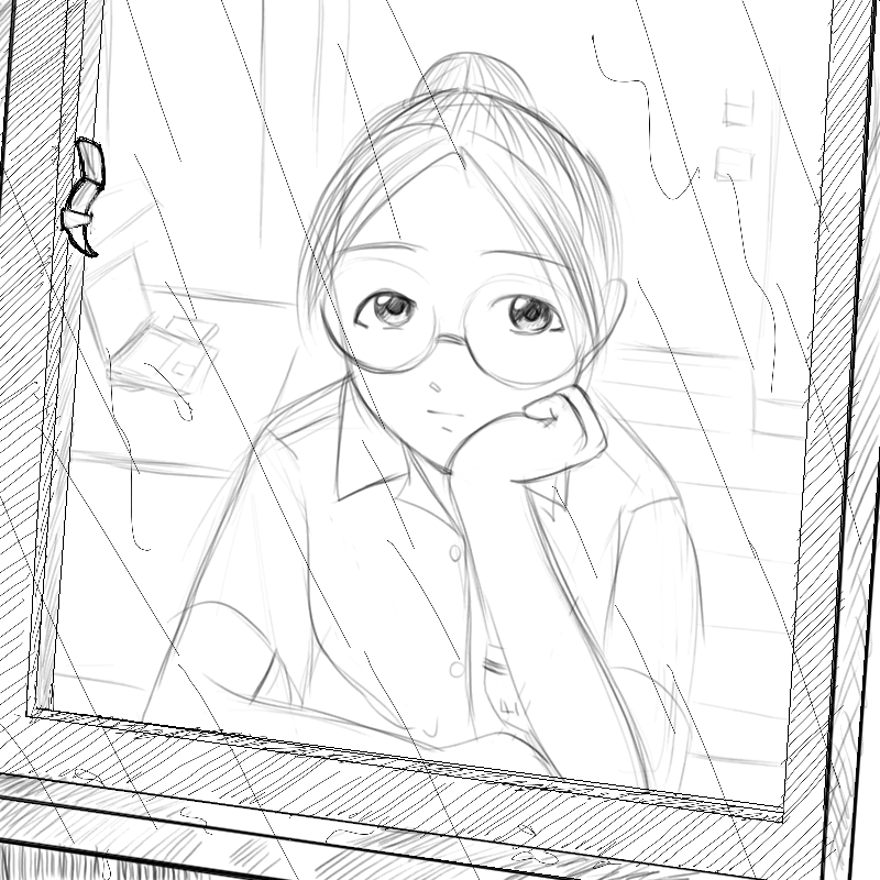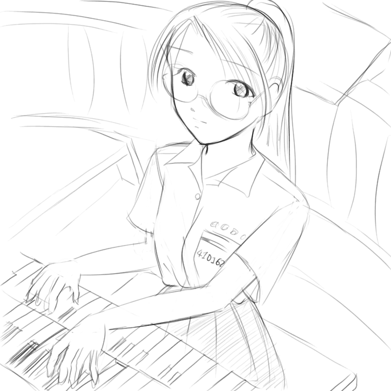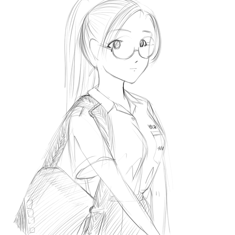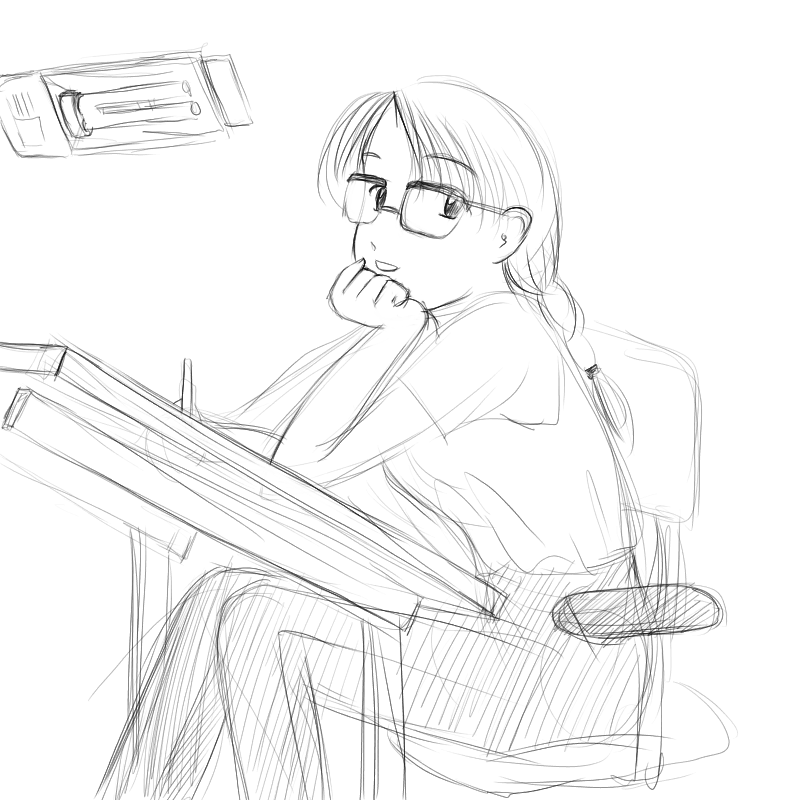 | 製圖桌前的眼鏡娘, 隨便畫畫.