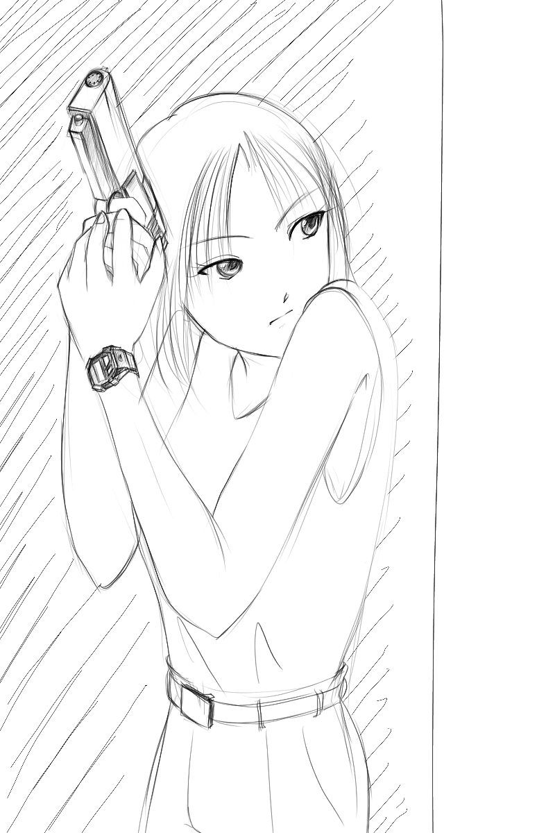 | 手槍, 不過不知道這種時候該配上什麼樣的衣服比較好. 我實在很不會看場景配衣服啊... (默)