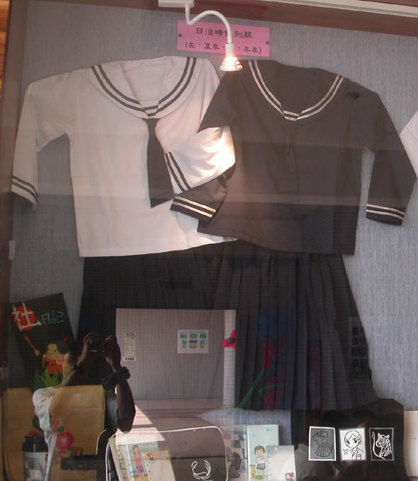 算了,程式的事情就隨便啦,會跑就好了,講別的。 十一月十二日是高雄女中的校慶,但那天是星期五,當然沒有辦法去;而隔天是園遊會,當然就是去拍些照啦。其中最讓我感興趣的是位在藝能大樓頂樓的校史室,但實際上進去看了之後有點失望,因為有很多資料沒辦法看,再加上我沒有辦法厚臉皮到直接拿相機出來翻拍,所以舊校園的模型就沒有照了。 這張照片是校史室外面的展示的舊制服,當然也有擺新制服,但我感興趣的是舊制服。怎麼說呢?因為我覺得舊制服的考據不足,感覺起來像是應湊出來的。顏色、樣式可能沒錯,但細節的地方不足。除了戰時物資缺乏的情況之外,一般學生制服上都至少會有校徽,真的弄不到日治時期的校徽的話好歹也該在大概的地方別個櫻花之類的小徽章吧?有擺出來總是讓人感到高興,畢竟能夠表現出歷史的感覺是很好的。 又,最近幾年的校慶紀念書包個人感覺實在不怎麼樣,所以還是只能繼續背1997年那一版 :~~ 資格考倒數十九天,該努力準備了。 それでは、ごきげんよう | |
