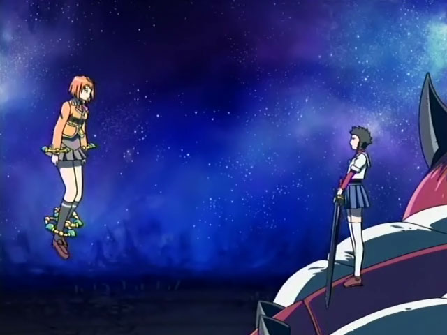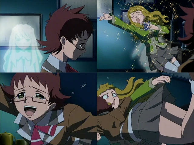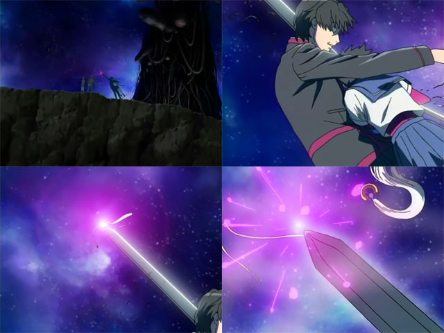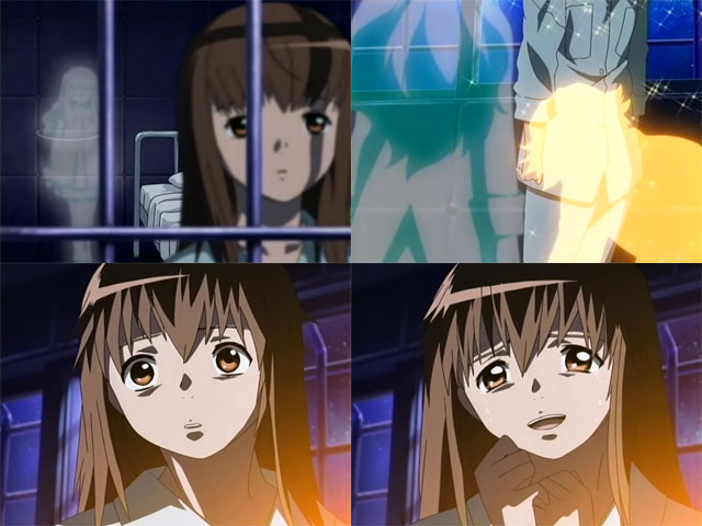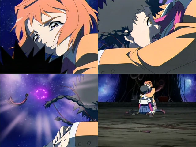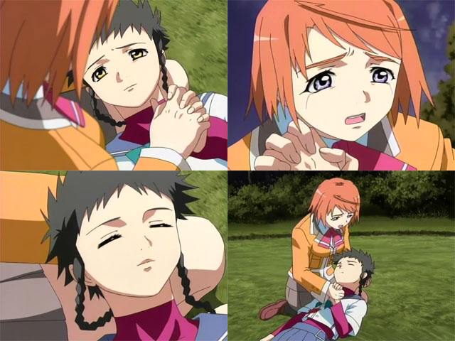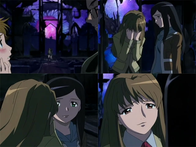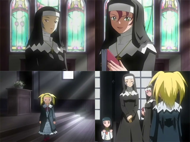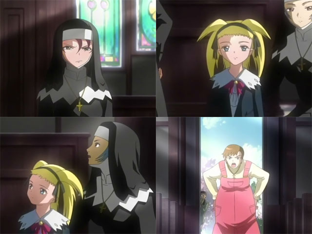 果然,大家一起合力殺敵,再強的敵人也可以被擊破!這就是熱血戰隊作品不能缺少的東西啊。可惜碧想要指揮全艦突入的時候被なつき搶先啦,歹勢,這就是主角和配角的差別。看到這邊其實有點消化不良的感覺,後面會講比較清楚。 而壞人、姫星被幹掉之後,凪那快死的表情更是有趣。所以其實他本來就知道大家合力去幹掉姫星應該就沒事了,可是他想看好戲所以不願意告訴大家這個可能性,真是...。 然後戰鬥結束,該是分別的時候,光看預告的時候會覺得命真的會掛吧?可是看了傷口,怎麼樣都不認為那樣的傷會在短時間內致命,最後結果是餓昏了。舞衣和カグツチ倒真的是分別了。 正常的最終回,要交代所有角色在戰後的生活是一定不能缺少的。恭喜紫子修女,肚子那麼大了,再也不能當修女了,哈哈哈。倒是奈緒和深優兩個當修女真的很怪,把來求助的人嚇跑好像很正常。不過アリッサ不是生命力耗盡而死了嗎?超怪異的。 ![]()