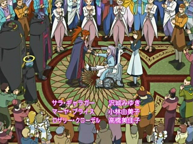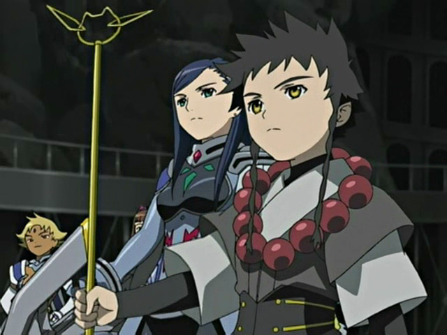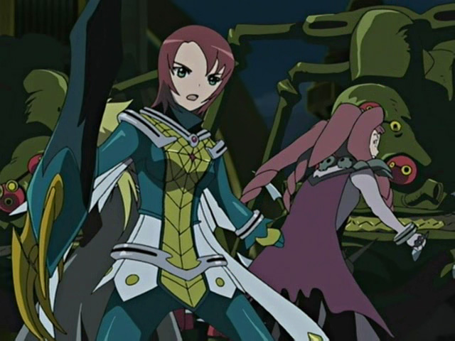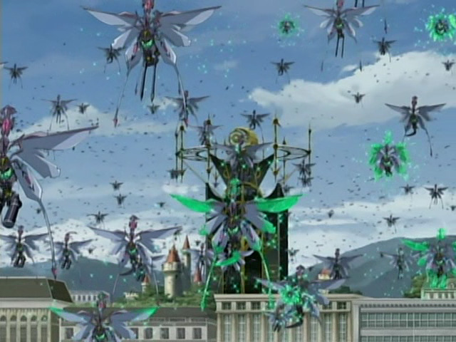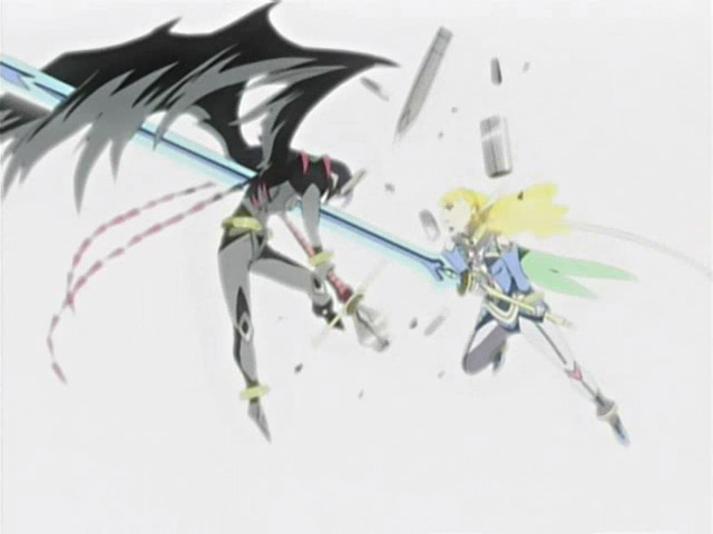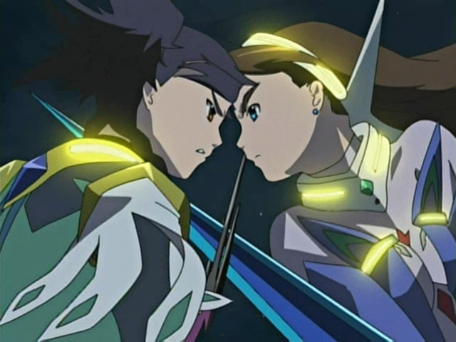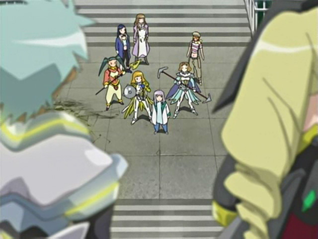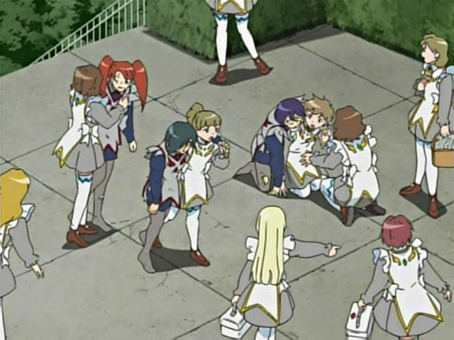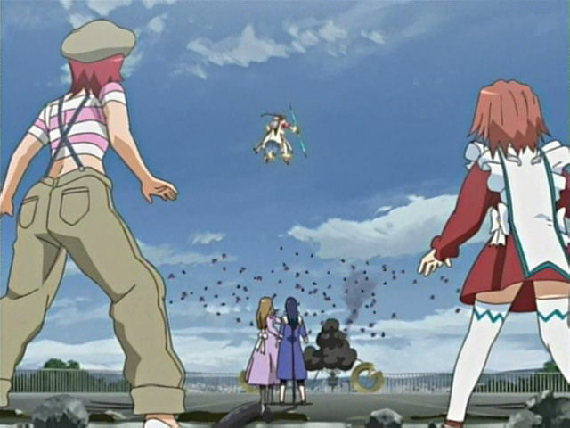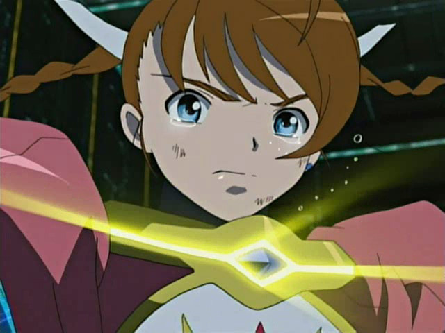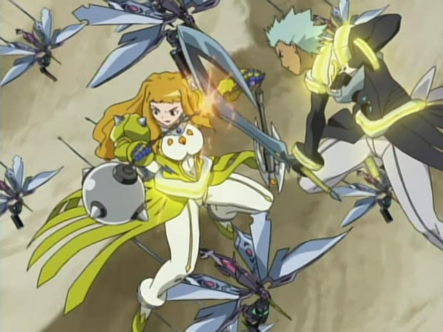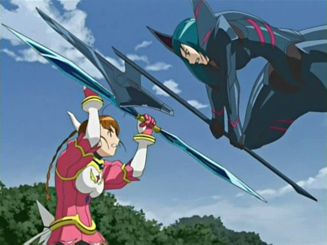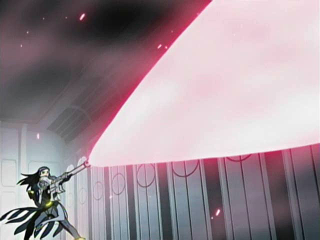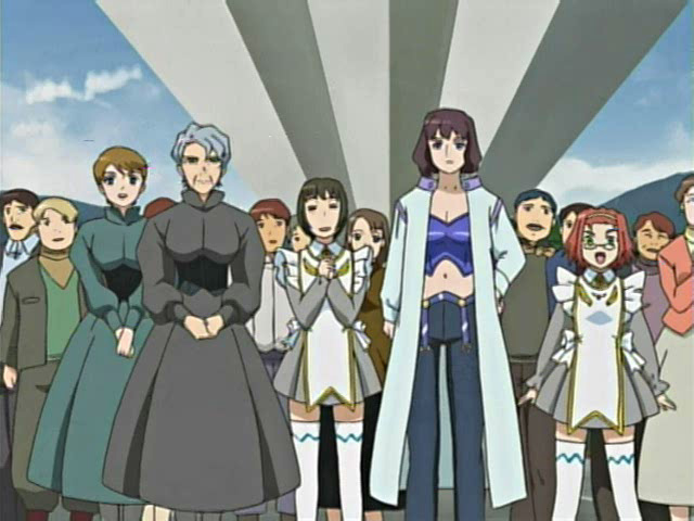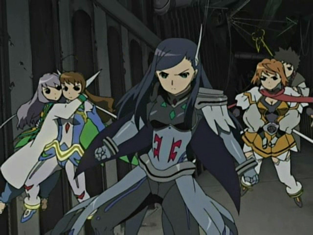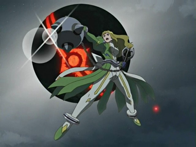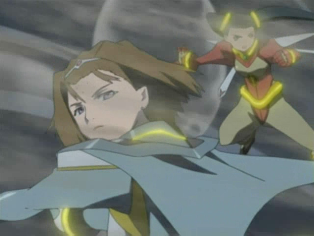 所以,基本上目的就是透過「物理」的,「有線」的和真祖接觸達成可以Materialize狀態,然後用ナツキ的陽電子炮(就說不是了)把對方的真祖給轟掉這樣。但相當可惜的是,跟EVA一樣,第一發一定都打不中。而比EVA慘的是,沒有第二發的機會啦。眼看著就要直擊的時候,當然就是正義夥伴登場的時候了。這次登場的則是フリーダム…不對,ユメミヤアリカ!靠著力量沒有全開的「蒼天の青玉」,還是把敵人的陽電子炮給彈回去啦! 這段的演出真是相當煽情,被某Seed D影響的嗎?應該這兩集有很多地方,アリカ跟キラ大神沒兩樣(汗),果然是Sunrise的台柱這樣。 對上田中トモエ之後,アリカ和マシロ様分別展開說服作戰,應該是多少有影響到正常的マイスター啦。 不過壞人怎麼可能這麼輕易的就放過這些オトメ呢?或者說,怎麼可能因為主角登場而手軟呢?這樣就不像是Sunrise社的壞人啦。所以更邪惡的計畫就開始啦,管它同不同盟,只要是オトメ就全部把她們能力給消掉,只剩下自己這邊有這種能力。所以就是再用真祖加強干擾功率,直接讓遠距離認證失效這樣。兩位本來在「壞人」那邊的マイスター就這樣輕鬆的被背叛了。 至於救了アリカ的チエ,號稱是因為シホ的まきまき讓她能夠脫離真祖控制,這實在很怪。まきまき真的有效嗎?(汗)不管怎樣,シホ也算是用正義夥伴的身份登場了,後面兩位跟著まきまき的リリエ和ヤヨイ,辛苦了。 但只有まきまき是沒有辦法止住田中トモエ的怨念的。所以要有更強力的正義夥伴登場才行,而這就是ミドリちゃん登場的時候啦!經過ヨウコ調校之後運作時間變成無限制的REM,讓ミドリ的戰力跟オトメ完全沒有差別啦!這才是真正的正義夥伴! 但敵人實在太多了,別的オトメ都沒力的話,只靠ミドリ也沒辦法去破壞掉壞人的真祖,只有靠著主人和オトメ能夠物理接觸的アリカ和マシロ様直接殺過去這樣。 再來是這集讓我差點流淚的一段,アリカ和レナさま的這段。尤其是アリカ秀著她還不完全的マイスターローブ那段。