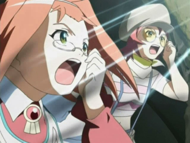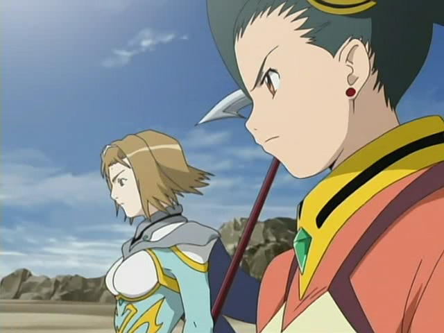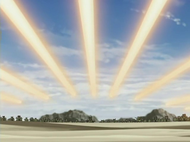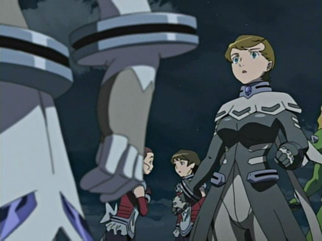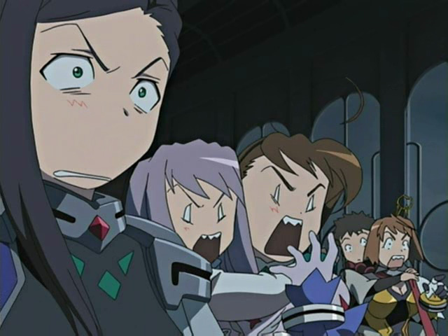 壞人的對策,就是直接用免錢戰力把對方主力幹掉就好了,呼呼。長期代理戰爭的結果,似乎是讓這些一般戰鬥單位都失去了對空防禦的能力?當然啦,對光束兵器大概不是一般戰鬥單位會遇上的,但至少往外放一些dummy啊!反正就是先製造第一次的緊張,然後讓第一批正義夥伴登場這樣。 不過實在沒有想到竟然是一堆石柱這樣冒出來,我還以為會是ユキノ在前作的チャイルド鏡子魔出來把那堆光束都反射掉咧 XD。整個黒い谷就這樣移到戰場邊,這跟ハルモニウム差不多犯規了吧;至於那堆石柱這樣冒,真的不會誤傷友軍嗎?太強了吧。 而看到アリカ而鬆了口氣(?)的ニナ,這樣的表情好幾集沒看到了,唉。