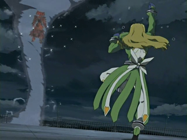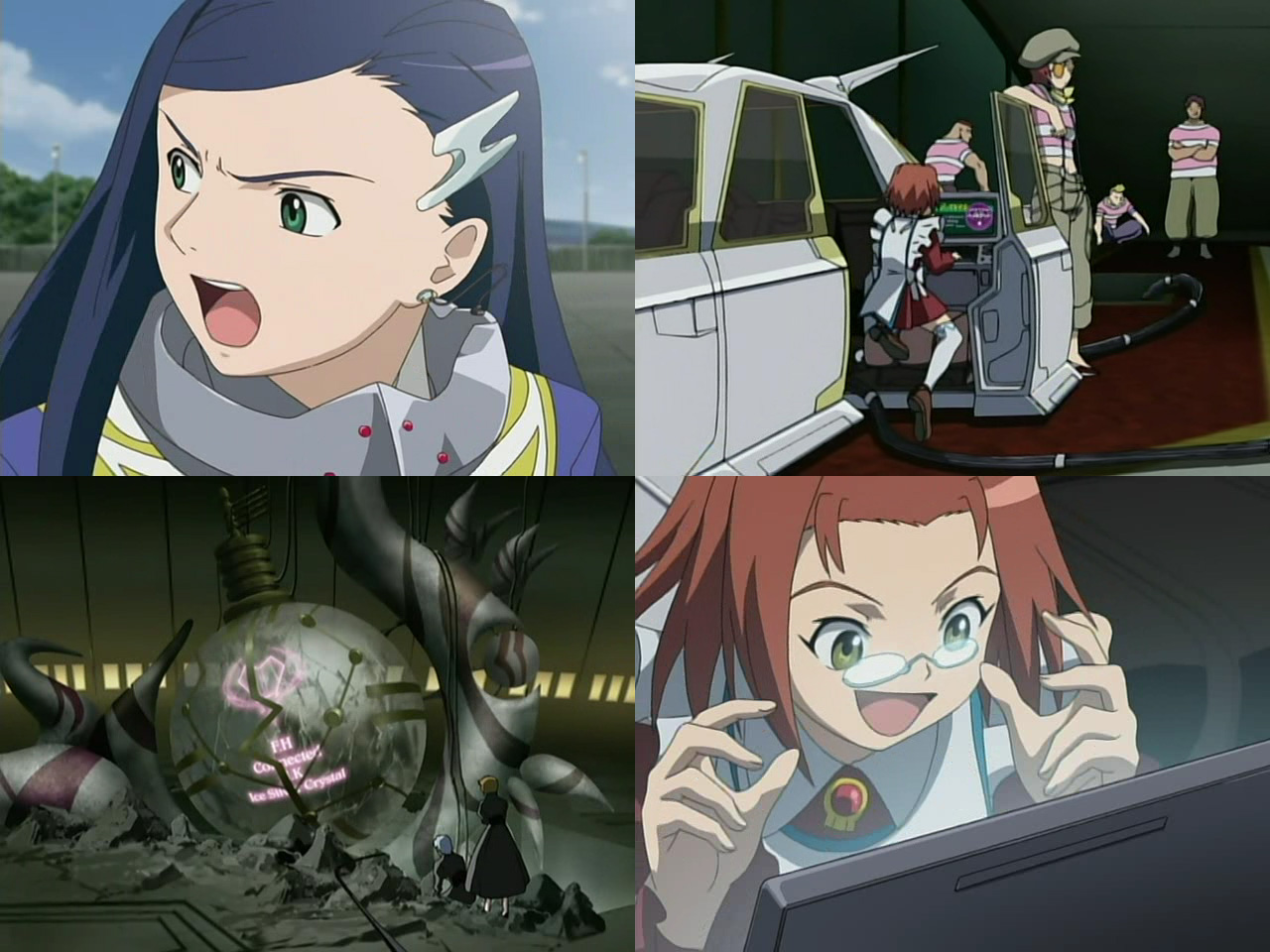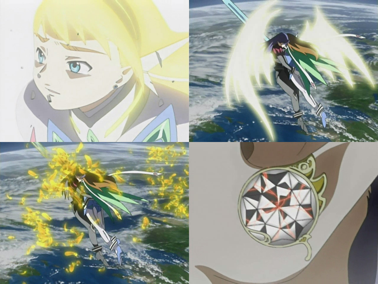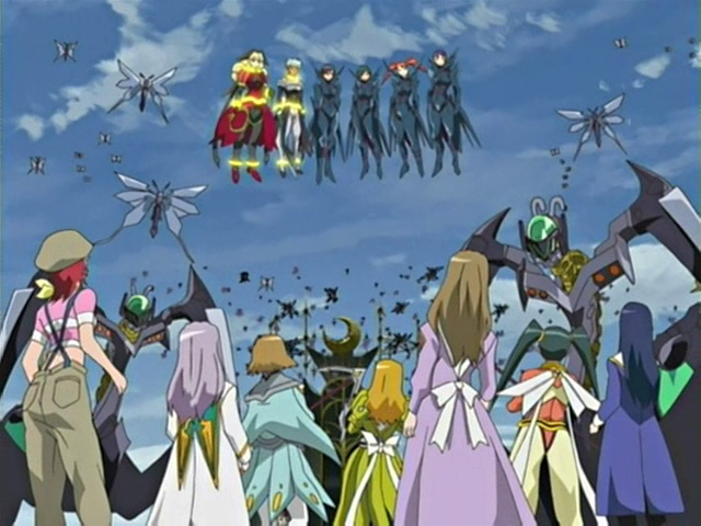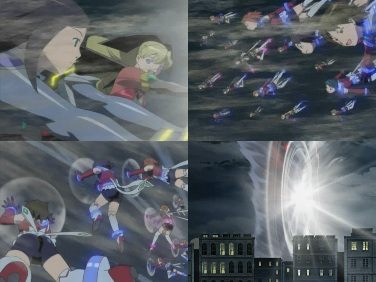 舞-乙HiME第26話「Dream☆Wing~夢の在処」五柱中的四人Materialize,真是帥氣的Logo,不愧是最後一話的全力演出?繼續上一話的龍捲風,基本上就是要把整個ヴィント市用ハルモニウム給毀掉這樣。 為了阻止龍捲風破壞城市而想要去擋的アリカ,被ミドリちゃん阻止仍不放棄,然後再加上五柱(扣掉マーヤ加上舞衣和ミコト)的加持在推隕石、不對、龍捲風;怎麼看都像是逆夏啊。但是龍捲風還是繼續往前進,因為アリカ沒有真的下去擋 XD 所以ミユ回風華學園做的事,就是解放所有オトメ的力量,而且不需要人類的主人這樣。所以這邊很有趣的點應該是,オトメ和HiME是可以相通的存在,但是HiME是能力,オトメ則是靠nano machine這樣?而月球(不確定他們是不是這樣叫)基本上就是一個超大型的認證用天線,就像是X鋼蛋裡面一樣? 或者說是像ミコト和舞衣那樣,由水晶の姫和一般オトメ訂契約那種感覺,而導きの星基本上是過去Seears財閥開發的``Administar''系統這樣?這部份的設定好像很有趣,可以再多找一些資料看看。