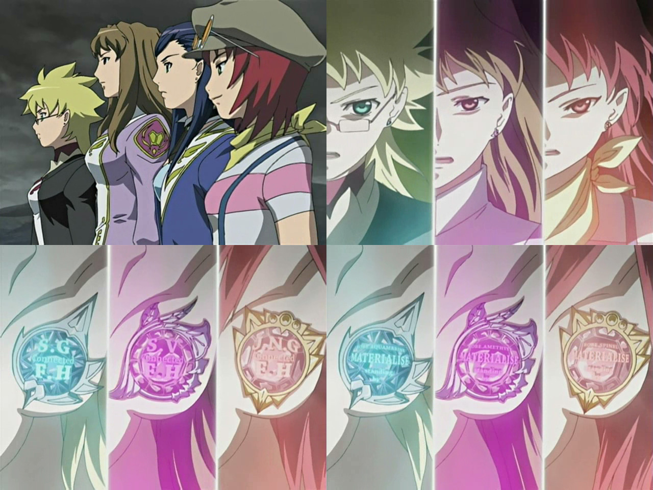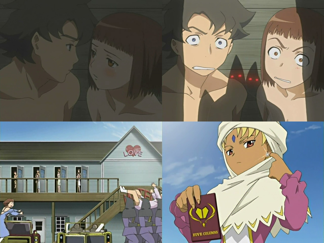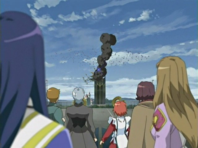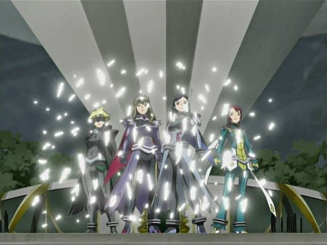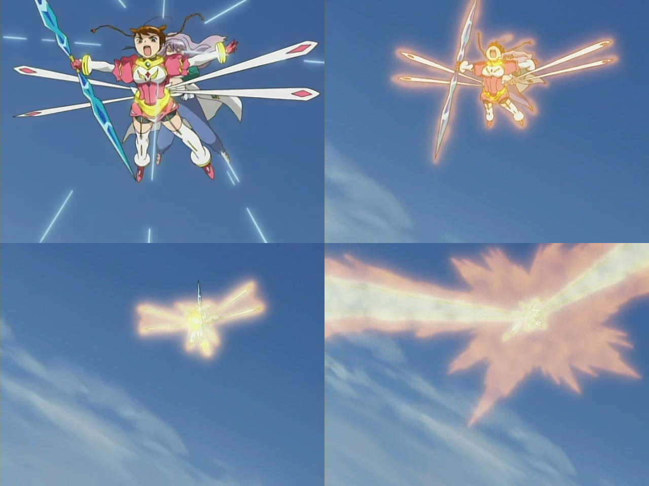 舞-乙HiME第26話「Dream☆Wing~夢の在処」五柱中的四人Materialize,真是帥氣的Logo,不愧是最後一話的全力演出?繼續上一話的龍捲風,基本上就是要把整個ヴィント市用ハルモニウム給毀掉這樣。 為了阻止龍捲風破壞城市而想要去擋的アリカ,被ミドリちゃん阻止仍不放棄,然後再加上五柱(扣掉マーヤ加上舞衣和ミコト)的加持在推隕石、不對、龍捲風;怎麼看都像是逆夏啊。但是龍捲風還是繼續往前進,因為アリカ沒有真的下去擋 XD 所以ミユ回風華學園做的事,就是解放所有オトメ的力量,而且不需要人類的主人這樣。所以這邊很有趣的點應該是,オトメ和HiME是可以相通的存在,但是HiME是能力,オトメ則是靠nano machine這樣?而月球(不確定他們是不是這樣叫)基本上就是一個超大型的認證用天線,就像是X鋼蛋裡面一樣? 或者說是像ミコト和舞衣那樣,由水晶の姫和一般オトメ訂契約那種感覺,而導きの星基本上是過去Seears財閥開發的``Administar''系統這樣?這部份的設定好像很有趣,可以再多找一些資料看看。