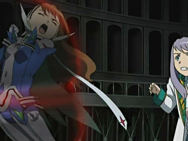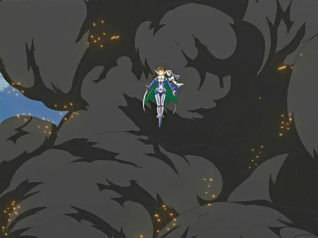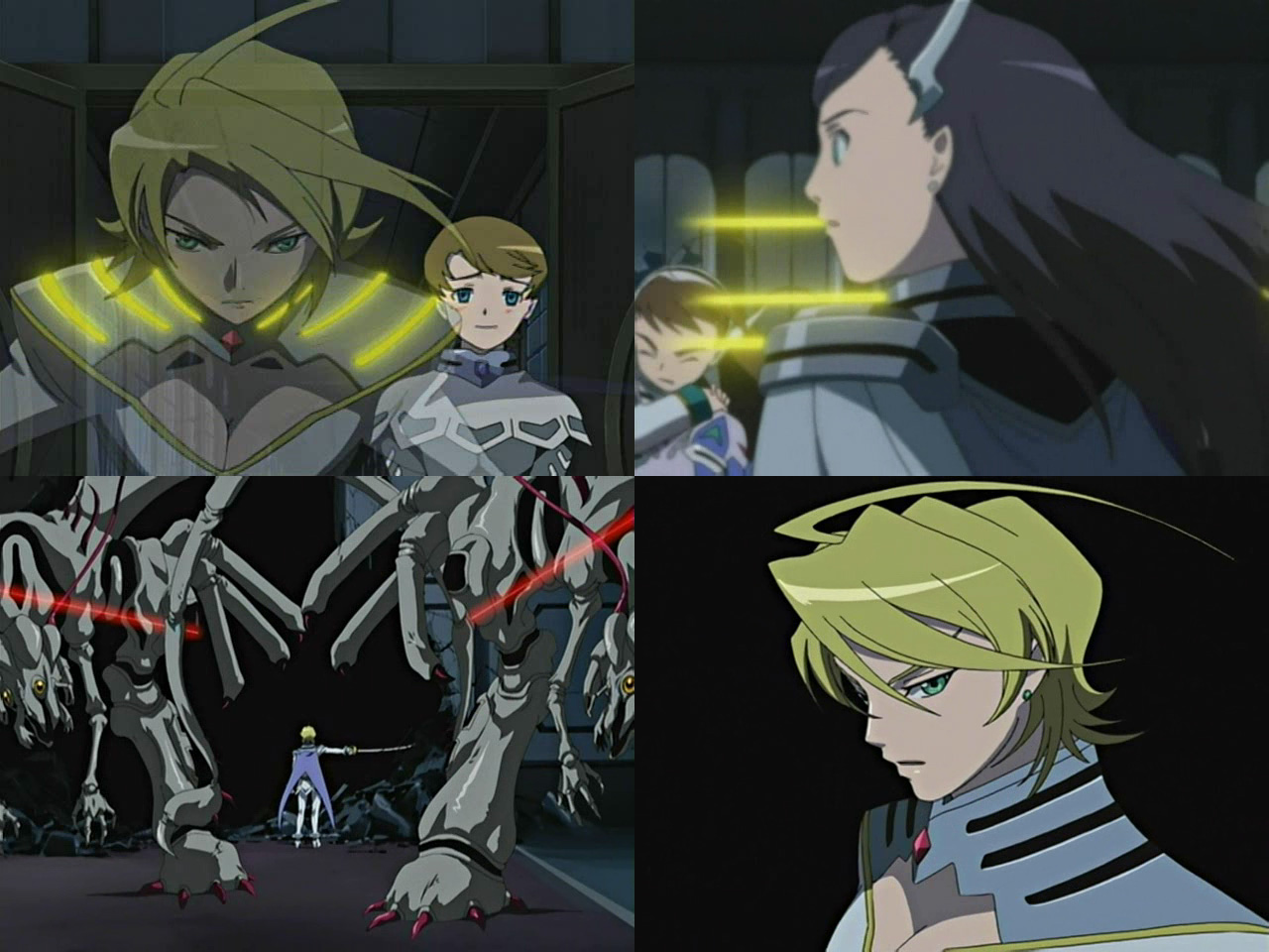 反正到最後一定是要ニナvs.アリカ的,所以又得要再分一個小隊出來;說真的讓ナツキ和舞衣、ミコト一起這樣的組合,我會想要看她們多料理一下這些スレイブ;但大概又是礙於篇幅(及觀眾歡迎程度),所以就跳過,直接殺進重點,最後命運的對決這樣。 基本上也沒有太多廢話,アリカ天真的發言,讓ニナ生氣,動用黑暗原力把アリカ擄走了。被擄走的アリカ好像被某種觸手綁過去一樣,而不是黑暗原力(本來就不是原力了)。